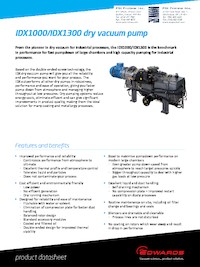 - These pumps offer the ability to handle large volumes of dust and water vapor without any loss of performance while minimizing maintenance requirements and running costs. The IDX dry pumps are capable of continually operating from atmosphere to ultimate.